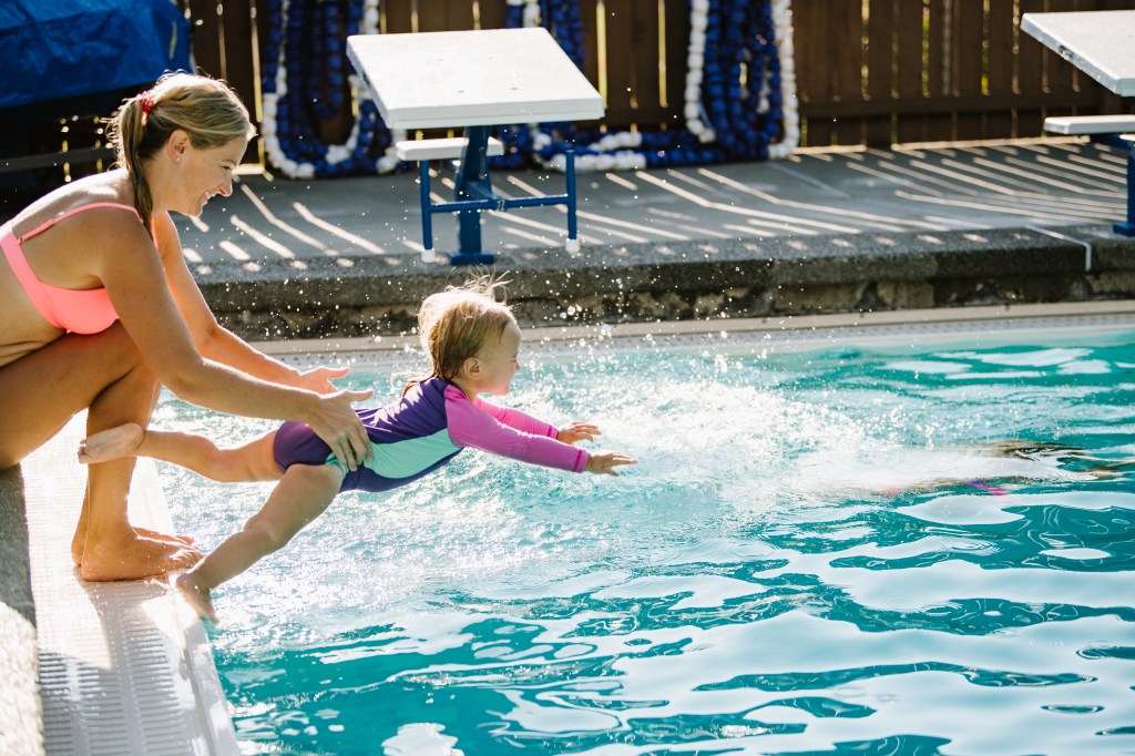 Water safety instruction for infants and young children includes modeling, coaching, and practice through play and songs while parents learn the why’s and how’s.